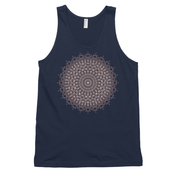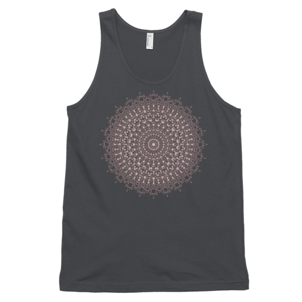 This unisex tank-top features the Mandala by AT3META. The tank-top is extremely smooth and soft, and has reinforced smooth arm and head holes. It is made out of 100% cotton jersey, except for the heather grey color (90% cotton, 10% polyester).